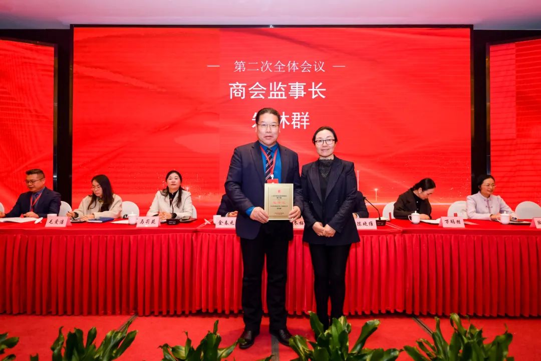 区工商联党组成员、副主席薛冬梅为商会监事长颁发证书。